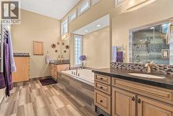As you pass through the iron gates of McKenzie Lake Island and cross the bridge into Calgary’s most exclusive sanctuary. Located within a private enclave of only 24 homes, this meticulously maintained Italian-inspired walkout bungalow, the Bellagio, offers an existence that feels less like daily life and more like a permanent Mediterranean vacation.The interior is a triumph of old-world opulence and architectural depth. Rich, extensive woodwork and soaring coffered ceilings define the main level, creating an atmosphere of warmth and grandeur. Sunlight pours through the floor-to-ceiling windows, illuminating a chef’s kitchen equipped with premium granite islands and high-end stainless appliances, all while framing the tranquil blue of the lake.Comfort here is absolute. The primary retreat has been reimagined as a world-class spa, featuring a recently renovated ensuite with indulgent in-floor heating and a massive custom steam shower. This commitment to wellness extends to the lower level, where in-slab heating ensures the walkout basement remains inviting year-round. Even the triple garage is an extension of the living space, boasting in-slab heating, a pristine epoxy floor, and abundant storage solutions to keep your luxury vehicles and outdoor toys warm and organized.The outdoor grounds are designed to be your private oasis. The tiered landscaping offers multiple separate sitting areas, perfect for chasing the sun with a morning coffee or gathering friends around the fire pit as the stars come out. Unlike steep waterfront lots, this property features gradual steps that lead you effortlessly down to the water’s edge and your private dock. With no motorized watercraft permitted, the silence is absolute, allowing you to fish directly from your property or launch a kayak into the glass-calm water. A short stroll around the island leads you to the clubhouse for a tennis match, while the boutique shops of McKenzie Towne and the conveniences of 130th Avenue are just minutes away. This is not just a home; it is a legacy property where every day feels like a getaway. (id:27)