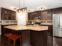 Two and one half Story properties in Walden only come up for sale once or twice each year! This fantastic 2 1/2 story immaculate 4 bedroom, 5 bathroom family home with over 2,800 square feet including the basement development is perfect for the growing family in highly sought after Walden! Close to schools and shopping. Easy access to ring road (Stoney Trail), MacLeod Trail and Highway 22X. Photos speak for themselves but here are some of the features. The kitchen is bright and spacious with an eating area, an island for quick snacks before leaving for school or work and easy access through the door leading to the awesome deck with a pergola. The double garage beyond is just off the deck. The kitchen has a walk-in pantry and a unique island that can seat 4 or 5. The entire main floor has wood flooring. The spacious area next to the door leading to the deck lends itself well for possibly a café table. Basement development is professionally done with lots of storage and a tiled alcove for an upright freezer. Basement is all carpeted except the laundry room and the 2 piece bath. The second level has the primary bedroom plus two more bedrooms all with walk-in closets and plenty of shelving. The primary bedroom ensuite shower has a built-in seat. The third upper level has a 4-piece bath, 4th bedroom also with a walk-in closet which is currently used as an office by the owners. Two final general comments, the yard is low maintenance and there is a new hot water tank installed in 2024! Call your REALTOR® for a showing today! Don’t miss out on this unique family home! NOTE: Photos were taken last summer in anticipation of listing in winter.