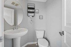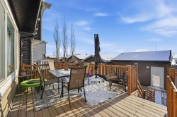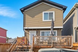 Welcome to this beautiful family home in the highly desirable lake community of Auburn Bay. Perfectly located within walking distance to Bayside School, shopping, the lake, and South Health Campus, with quick access to Deerfoot and Stoney Trail for an easy commute anywhere in the city.Step onto the inviting front porch and into a bright, open-concept main floor featuring a spacious living room, seamless kitchen with large island, stainless steel appliances, including a gas stove, rich cabinetry, and a dining area ideal for family gatherings. A rear mudroom and convenient 2-piece bath complete the main level.Upstairs, the primary bedroom offers a walk-in closet and ensuite, joined by two additional bedrooms, a full 4-piece bathroom, laundry room with skylight, and central A/C for year-round comfort.The backyard is made for entertaining with a large deck, green space for kids and pets, and an oversized garage, 20' wide, 22' Deep, 9.5' High Ceilings and 8' High door and tons of storage space ! The unfinished basement is framed and ready for your design ideas. With no rear neighbours and extra privacy on the west side, this property is truly a rare find.