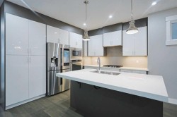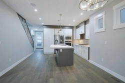 A must-to-see is this beautifully appointed infill in the popular inner city community of Capitol Hill, nestled in this secluded cul-de-sac just minutes to the TransCanada Highway, SAIT & North Hill Centre. With 3 levels of sleek air-conditioned living, this fully finished two storey enjoys upgraded engineered hardwood floors & quartz counters, 6 bedrooms & 4 full baths, 9ft ceilings throughout & low-maintenance South backyard with aggregate patio & detached 2 car garage. Available for quick possession, with a fantastic open concept main floor featuring the South-facing living room with fireplace & built-ins, spacious dining room area & stylish designer kitchen with 2-toned cabinetry, soft-close drawers & cabinets, quartz counters & KitchenAid/Samsung stainless steel appliances including gas cooktop & built-in oven. Upstairs on the 2nd level there are 3 bedrooms & 2 full baths; the primary bedroom has a walk-in closet with built-ins & the jetted tub ensuite has quartz-topped double vanities & oversized glass shower. There are vaulted ceilings in the 2nd & 3rd bedrooms, & they share the family bath which also has quartz counters & tile floors. Between the bedrooms is a great-sized loft area & laundry with quartz counters, cabinets & Whirlpool washer & dryer. The lower level – with a separate side entrance, is fully finished with 2 bedrooms & another full bath, rec room with built-ins & laundry/utility room with Whirlpool washer & dryer. On the main floor there is another bedroom with its own ensuite with shower…which would also make a great home office. Additional features include built-in ceiling speakers, closet organizers & gas BBQ line & pergola in the South backyard. Only minutes from your front door is Confederation Park & golf course, area schools & bus stops, & with its easy access to 14th Street & TransCanada Highway, you are within quick reach of the LRT, hospitals, McMahon Stadium & University of Calgary, major retail centers & downtown.