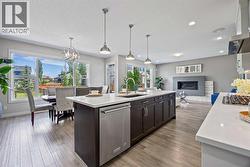 Welcome to 144 Legacy Mount SE an exquisite 2824 sq. ft. detached home in one of Calgary’s most sought-after and family-friendly communities: Legacy. Ideally located across from prestigious Legacy Estate Homes and backing onto a tranquil green space with a playground, this stunning property seamlessly blends elegant design, upscale finishes, and everyday functionality to create the perfect forever home. Step inside and experience a true sense of grandeur. From the moment you enter, you're greeted by 9-foot ceilings, upgraded 8-foot doors, and a show-stopping curved staircase with stylish railings and an open-to-below layout, all illuminated by an abundance of natural light streaming through oversized windows. Throughout the home, hardwood and tile flooring ensure a carpet-free, low-maintenance lifestyle with timeless appeal. At the heart of the home is a two-toned designer kitchen that’s both beautiful and functional. It features ceiling-height white cabinetry, quartz countertops, under-cabinet lighting, and premium appliances including a gas stove, chimney-style hood fan, wine fridge, and a fridge with a water line. Thoughtful touches like hidden sponge storage, a built-in soap dispenser, and strategically placed electrical outlets highlight the attention to detail. The massive central island and walk-in pantry provide exceptional storage and prep space, while the kitchen flows effortlessly into the dining and living areas, offering sweeping views of your private backyard oasis. The cozy living room is anchored by a modern gas fireplace and features built-in speakers, perfect for relaxed nights or entertaining. Step outside to enjoy your 2-tiered cement deck with a BBQ gas line—the ultimate summer setup. Finishing off the main level is a bright home office with double French doors, ideal for remote work, and a spacious mudroom with built-in lockers, leading to the finished double garage, complete with smart storage solutions. Upstairs, a central bonus room smartly separates the luxurious primary retreat from two generously sized bedrooms, offering optimal privacy. The primary suite is a true retreat with a spa-like ensuite featuring dual vanities, ample counter space, medicine cabinet, soaker tub, stand-up shower with built-in bench and dual nooks, a private water closet, and extra linen storage. The expansive walk-in closet comes fully outfitted with custom built-ins and drawers. The two secondary bedrooms each offer walk-in closets with windows and share a beautifully appointed 4-piece bathroom. The upper-level laundry room adds everyday convenience with its utility sink, abundant counter space, lower cabinetry, and ample hanging options. Additional upgrades that are worth noting are central air conditioning, Hunter Douglas Window Coverings Throughout, Built-in Speakers, Ethernet Cat6 Cable in Every Room and Smartphone-Controlled Underground Irrigation System. Don’t miss your opportunity to own this elegant and highly upgraded home! (id:27)