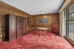 Extremely rare opportunity to own one full Acre of land, a truly unique estate property nestled in a lush park like setting, private grounds in one of Southwest Calgary’s most coveted communities- Pump Hill. Surrounded by mature trees and located directly across from a tranquil green space, this sprawling family home offers 5 spacious bedrooms, with over 9,000 (pool area included) square feet of living space awaiting your dream renovation.From the moment you step inside, the grand two-storey foyer with its sweeping curved staircase sets the tone for the home's timeless charm and generous proportions. The main floor features expansive formal living and dining rooms, a chef-inspired kitchen with professional-grade gas range, and an informal dining nook overlooking the gardens. A warm and inviting family room is finished with rich wood paneling and a striking corner stone fireplace—perfect for gathering with family or hosting guests.The indoor swimming pool complex includes a hot tub, sauna, and a dedicated fitness area—all housed in a bright, skylit pavilion that brings the outdoors in, year-round. Currently decommissioned, the indoor pool complex could be returned to its former glory or re-envisioned as a golf simulator, sport court, artists studio, collectable car display or hobby room.Three spacious bedrooms, each with its own ensuite, are thoughtfully located on the main level. Upstairs, a private primary retreat offers a peaceful escape, complete with a sunny balcony and large ensuite featuring a stylish freestanding soaker tub and a large walk-in shower. A fifth bedroom with powder room and a handsome library overlooking the foyer complete the upper level.The lower level is a nod to retro glamour, boasting a groovy naugahyde bar and lounge, games room with pool table, expansive recreation room with brick archway and wrought iron accents, a large media room and a wine cellar.Outside, the beautifully landscaped backyard is a true extension of the home, with multiple levels of paver stone patios for lounging and dining, a built-in fireplace, lower-level gas fire pit with seating, and gardens of established perennials, lush lawns and mature trees. This spacious yard could easily accommodate a hockey rink, basket ball, pickle ball or tennis courts.The circular front drive welcomes guests in style at the double carved-wood front entry doors, that lead to an attached 4-car heated garage with plenty of room for vehicles and all your gear. Beside the garage there’s an RV pad or the perfect place to store your sailboat.Ideally located near great shopping, dining, and amenities, this exceptional estate is also just minutes from the Glenmore Park and Reservoir, Glenmore Sailing Club, and Calgary’s extensive pathway system. With easy access to downtown and major roadways, this is inner-city estate living at its finest—rarely available and truly unforgettable.