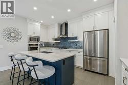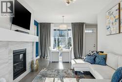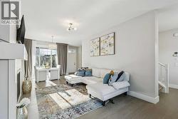 Welcome to this beautifully designed former showhome by Dream in the sought after new community of Alpine Park. This detached two storey home with a third level loft features a smart, functional layout that prioritizes purposeful spaces over wide open floor plans, reflecting one of the leading design trends for 2026. The main floor features distinct yet connected living and dining areas that integrate seamlessly with outdoor spaces. Windows at both the front and back of the home allow natural light to flow throughout the day. The living and dining rooms sit on the west side of the home, anchored by a cozy gas fireplace. Sliding patio doors on both sides of the space create easy indoor and outdoor living and allow for flexible furniture arrangements. The kitchen is spacious and well designed, perfect for the home chef. A moody blue colour palette paired with crisp white cabinetry creates striking contrast against the rich hardwood floors. Features include upgraded stainless steel appliances, open shelving, a large island, and a corner walk through pantry. Just off the kitchen is a bright front flex room, ideal for a home office or playroom. A large south facing bay window fills the space with natural light and offers views of the private park across the street. A discreet powder room and rear mudroom lead to the full width back deck, yard, and oversized garage. The second level offers three generous bedrooms, including a primary retreat that impresses with a vaulted ceiling and sun filled atmosphere. The large walk in closet leads to a spa inspired ensuite featuring dual sinks, a standalone tub, and a full walk in shower. Two additional bedrooms, a four piece bathroom, and a conveniently located laundry room complete this level. The third level loft is a valuable upgrade from the standard plan and adds exceptional flexibility and square footage. This space is ideal for a media room, play area, study space, or teen retreat, with views to the north toward downtown and to the south toward the mountains. This home is ideal for buyers seeking flexible living spaces, a low maintenance exterior with no shovelling, seamless indoor and outdoor flow, and elevated finishes throughout. Alpine Park offers the perfect balance of city and nature, located approximately 15 minutes from downtown Calgary and 30 minutes from the Rocky Mountains. Designed to bring people together, the community features parks, pathways, and convenient access to everyday amenities just minutes away. The small monthly condo fee of $102 includes the HOA fee for Alpine Park as well a snow removal and upkeep of greenspace's' /common areas. (id:27)