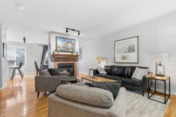 This beautifully updated 2-bedroom + den, 3.5-bath townhouse with endless views, offers the perfect blend of style, comfort, and location. Freshly painted throughout, this home welcomes you into a bright, open layout designed for modern living.The gourmet kitchen is a chef’s dream — featuring premium finishes, ample cabinetry, and a seamless flow to the dining and living areas, where a cozy fireplace and breathtaking green space views from the dining room create the perfect atmosphere for entertaining or relaxing.Upstairs, you’ll find a spacious master retreat with soaring vaulted ceiling, large windows framing those endless views, and a spa-like ensuite that invites relaxation. The second master bedroom also features its own private ensuite, providing comfort and privacy for guests or family. A flex room/den/loft offers versatility — ideal for a home office, reading nook, or creative space.The fully finished walkout basement expands your living space, boasting a second gas fireplace, a large family room, games or gym area, and another full bathroom. Step outside to your private patio and enjoy the serene backdrop of nature — no rear neighbors, just tranquil green space that stretches as far as you can see.This home truly has it all: Style, functionality, and unbeatable views on every level. Move-in ready and meticulously maintained — Close to walking paths, schools, shopping, and transit