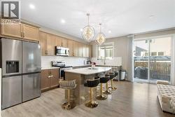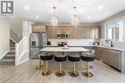 Welcome to this beautifully appointed detached home in the quiet and peaceful community of Carrington, offering over 2,600 sq ft of developed living space and quick access to Stoney Trail for an easy commute. The main level features 9’ ceilings and an open-concept layout filled with natural light. The spacious living room is anchored by a gas fireplace, while the gourmet kitchen showcases quartz countertops, a large central island, and ample cabinetry — perfect for everyday living and entertaining. The dining area opens to a west-facing backyard, ideal for enjoying evening sun. Upstairs offers three generously sized bedrooms, including a spacious primary retreat with a large walk-in closet and a luxurious 5-piece ensuite. A 5-piece main bathroom completes the upper level, providing excellent functionality for families. The fully finished basement adds valuable living space with a versatile recreation area, kitchenette, and a 3-piece bathroom, perfect for guests, a home gym, or media room. Enjoy being just minutes from a beautiful nearby pond, public transit, parks, and pathways, with a bus stop only minutes away. The double attached garage, peaceful surroundings, and convenient access to major routes make this home an outstanding opportunity in Northwest Calgary. (id:27)