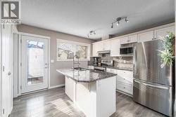 Well maintained, move-in ready home located on a quiet street in Evanston. The property benefits from a prime location within walking distance of Our Lady of Grace Elementary School and less than a block from a playground, and just steps away from access to the community’s extensive ravine pathway system, including impressive city views from Evanston West Lookout Point. Home features three bedrooms and two and a half bathrooms, providing ample space for families. The main level offers a welcoming, open and bright layout with lots of the west facing natural light flooding the space. The thoughtfully designed kitchen is equipped with stone countertops and newer stainless steel appliances. Upstairs, three bedrooms include a primary suite complete offers a four-piece en-suite bathroom and walk-in closet. Outside, a sunny east-facing fenced backyard boasts a deck, pergola, and sprinkler system—ideal for summer enjoyment. The double detached garage is insulated and offers a paved, wide back alley. Both the garage and home received new roofing in 2025, and almost all the siding was replaced that same year for added peace of mind and curb appeal. The unfinished basement includes laundry with newly replaced machines, roughed-in plumbing for a bathroom, and an egress window, allowing for optimal future customization. This property offers an excellent opportunity for first-time buyers, families, and anyone seeking a high-quality starter home. (id:27)