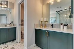 Set within the vibrant and fast-growing community of Seton, this brand-new home at 182 Setonstone Green SE by Trico Homes offers a rare combination of modern design, functional living space, and income-generating potential. Thoughtfully crafted with both style and versatility in mind, this residence is ideal for families, professionals, or investors seeking long-term value in one of southeast Calgary’s most connected neighbourhoods.The main living area immediately impresses with high ceilings and expansive windows, flooding the space with natural light and creating a bright, open atmosphere. The grand fireplace anchors the living room, adding warmth and architectural presence. The kitchen is designed to inspire, featuring quartz countertops, a gas stove, built-in oven, and ample cabinetry—perfect for both everyday cooking and entertaining. An added highlight is the separate spice kitchen, complete with an electric stove and dedicated sink, offering exceptional convenience for those who love to cook.Upstairs, the home features three well-appointed bedrooms and a full upper-level laundry room, keeping daily routines efficient and organized. The primary bedroom serves as a private retreat with a luxurious 5-piece ensuite, including dual sinks, a soaker tub, and a walk-in shower. The walk-in closet with built-in organizers completes the space, providing both function and elegance. Two additional bedrooms and a full bathroom round out the upper level, ideal for family living.The fully finished basement adds significant value, offering a legal secondary suite with two bedrooms, one full bathroom, a separate entrance, and its own laundry closet—perfect for rental income, extended family, or guests.Additional features include a double attached garage, modern finishes throughout, and a location just minutes from Seton’s Urban District, South Health Campus, schools, shopping, restaurants, and major commuter routes.Combining contemporary design, thoughtful upgrades, and a fully legal suite, 182 Setonstone Green SE delivers exceptional flexibility and lifestyle appeal in one of Calgary’s most desirable new communities. *Measurements have been pulled from builder drawings* (id:27)