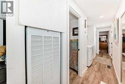 Welcome to this cute, professionally renovated mobile home in Watergrove mobile home park (45+ community). This home was taken down to the studs just two years ago and redone with drywall, knockdown ceiling, pot lights and vinyl plank flooring. A large primary bedroom with a huge closet, a good size second bedroom with a desk nook, and a 4 pce renovated bathroom are at the far end of the home. The kitchen has new shaker style cabinets, quartz countertop with waterfall edge, kitchen nook with decorative wall paneling, kitchen island, stainless appliances and a large window that brings in lots of light. The spacious living room has decorative wall panels that add modern style to the home. The bathroom was also updated with new bathtub, vanity and fixtures. Double pane vinyl windows were installed in 2018, new roof 2019, new siding 2023, new exterior doors 2023 and new hot water tank with leak monitor 2025. The backyard is fenced and has a powered shed for extra storage. This home is in a quiet cul de sac location just a short walk to the clubhouse. The amenity rich community includes an outdoor pool for summer annd the clubhouse features small gym, games room, lending library, dry sauna and indoor hot tub. Conveniently located to shopping at Crowfoot Crossing and the Crowfoot LRT station. Watergrove is a well managed 45+ community. Lot fee is $845/month and includes water, sewer, waste and recycling. Pet restrictions are 2 pets per home; dogs must be less than 15 inches at the shoulder when fully grown. (id:27)