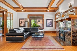 Situated in the heart of Calgary’s renowned Cliff Bungalow neighborhood, combines historic charm with modern comfort and unbeatable convenience. Explore vibrant restaurants, cafés, boutique shops, and the lively energy of 4th Street and 17th Avenue, while scenic river pathways, downtown amenities, and everyday conveniences are all just steps away. The home is also just a short walk from Western Canada High School, one of the city’s top public schools offering the International Baccalaureate (IB) program, —making location one of the home’s greatest highlights. This rare 5-bedroom home with 10ft ceilings features thoughtful upgrades, including a fully refreshed wrap-around verandah with new wood flooring, updated venting pipes, refinished kitchen taps, basement has in floor heating, a mostly new hot water tank, new basement flooring. The boiler has been replaced with an efficient model. and a new cedar shake roof was installed in 2019 at a cost of over $60,000, All old knob-and-tube wiring has been removed and replaced with modern electrical systems and a steam shower for added modern comfort . All original main-floor woodwork has been carefully cleaned and refinished with high-gloss varnish, preserving its historic integrity. Each room features individual thermal control, with a total of 8 thermostat-controlled zones throughout the house, ensuring personalized comfort in every space. Over $200,000 in renovations give this cherished historic home a renewed appearance that honors its heritage while offering modern functionality and comfort.Inside, the home opens to a grand oak-clad hallway and a flowing floor plan highlighted by original quarter-sawn oak millwork, built-in cabinetry, and beveled-glass windows that showcase the craftsmanship of the period. The dining room leads to a sunroom with leaded glass windows, while the kitchen is equipped with floor-to-ceiling built-ins and a functional dumbwaiter. The grand living room features a striking fireplace, and the master suite offers a luxurious soaking tub. Dedicated leisure spaces include a poker room and a lower-level recreation area with ping pong and pool tables, a wet bar, and lounge space. Historic elegance, modern comfort, and an unbeatable location—all in one home.