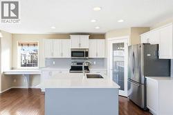 Welcome to this sunny and beautifully maintained 4-bedroom, 3.5-bathroom Jayman built 2-storey walkout basement with LEGAL SECONDARY SUITE, with South West backyard, perfectly situated on a desirable corner lot in the established community of Panorama Hills. Offering over 2,000 sq. ft. of thoughtfully designed living space, this home blends timeless elegance with modern comfort throughout. Step inside to a bright, inviting main floor highlighted by warm hardwood flooring, designer paint tones, and an open yet functional layout. The front flex/dining room provides versatility for formal dining, a home office, or an additional sitting area. The gourmet island kitchen features maple cabinetry, a corner pantry, tile backsplash, pot lighting, and sliding doors that lead to a generous deck overlooking the landscaped rear yard and a beautiful city view. Adjacent to the kitchen, the spacious great room is anchored by a cozy corner gas fireplace—perfect for relaxing or entertaining.Upstairs, a charming loft with a custom maple built-in bookshelf offers the ideal spot for reading, working, or family movie nights. The primary suite provides a peaceful retreat with city views, a luxurious 4-piece ensuite complete with a large soaker tub and separate shower, and a walk-in closet with a custom organizer. Two additional bedrooms and a full bathroom complete the upper level.The fully developed walkout basement extends your living space with a comfortable ONE BEDROOM LEGAL SUITE, complete with its own gas fireplace, a full 4-piece bathroom, and private access through either the double attached garage or the rear yard. This level offers fantastic mortgage-helping potential. Laundry is conveniently available on both the main and lower levels.Outside, enjoy the benefits of a corner lot, a spacious backyard, and quick access to local pathways. Located in the family-friendly and highly sought-after community of Panorama Hills, this home is close to parks, schools, shopping, recreatio nal facilities, transit, and major routes including Harvest Hills Blvd and Stoney Trail. Please check the 3D tour link. The house is recently painted and the carpet proffesionally cleaned. Roof was fully replaced in 2025.Don’t miss this incredible opportunity—book your viewing today! (id:27)