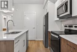**OPEN HOUSE SATURDAY FEB 14TH 12PM-2:30-PM ** WELCOME TO SONOMA IN BELMONT! This BRAND NEW/ NEVER OCCUPIED 2-bedroom, 2-bathroom townhome showcases a California-inspired design that perfectly balances modern style with timeless elegance. Bathed in natural light, this bright and spacious south-facing home offers approximately 1,150 sq. ft. of thoughtfully designed living space.The main level features a generous living room with large windows overlooking your sunny private patio—ideal for relaxing or entertaining. The adjacent dining area seamlessly connects to the chef-inspired kitchen, complete with quartz countertops, modern cabinetry, ample storage with dual pantries, energy-efficient stainless steel appliances, and wide-plank LVP flooring throughout.Upstairs, you’ll find two well-sized bedrooms, including a primary retreat with a walk-through walk-in closet and a stylish cheater ensuite. Convenient upper-level laundry adds to everyday ease. Enjoy year-round covered parking with direct access to the unit for ultimate convenience. Across your front door, your guests will find many visitor stalls.Located in the vibrant community of Belmont and built by 16-time Builder of the Year, Morrison Homes, this neighbourhood offers connected pathways, parks, playgrounds, and nearby shopping. With quick access to Stoney Trail and Macleod Trail, commuting is effortless. Spend weekends enjoying local attractions such as Spruce Meadows, or cheering on Cavalry FC at ATCO Field, just minutes away. (id:27)