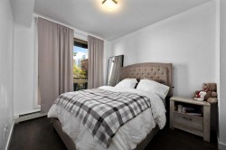 Mission offers a true walk everywhere lifestyle with 4th Street dining, boutique shops, river pathways, and the best of Calgary living just steps from downtown, parks, and endless amenities. Living at The District delivers it all. This well designed 2015 north facing 1 bedroom, 1 bathroom condo includes TITLED underground parking, assigned storage, and a spacious balcony. The open concept layout features large windows, 9 ft ceilings in the living, and a chic kitchen with sleek two tone cabinetry, quartz countertops, a peninsula with seating for three, gas cooktop, full stainless appliance package, and pendant lighting. Just off the kitchen is a thoughtfully designed built in office space. The living room is filled with natural light and city views, while the spacious bedroom connects to a walk through closet and spa inspired bathroom with a soaker tub and tiled shower. Added conveniences include in suite laundry with extra storage, and a balcony with gas hookup for summer evenings. Check out the virtual tour and book your showing today to see why this home stands out.