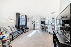 Bright and beautifully designed, this 753 square foot one bedroom plus den townhome offers both comfort and functionality. VAULTED CEILINGS and large windows fill the home with an abundance of natural light, enhancing the open-concept living space. The kitchen flows into the living & dining space, provides ample counter space, plenty of cupboards AND a walk-in pantry! The large den can be used for a home-office, guest area or bonus living space! Comfort is elevated with IN-FLOOR HEATING throughout and the efficiency of a tankless hot water system. The bright spacious bedroom and 4 piece bathroom complete this layout. Enjoy the added benefit of LOW CONDO FEES and a prime location. Close to parks, playgrounds, shops & minutes away from Stoney Trail for an easy commute. An excellent space for first-time home buyers, investors, or if you are looking to downsize.