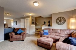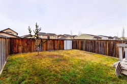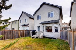 This charming, detached two-storey situated on a quiet street offers an excellent plan that makes every inch count. You and your family will enjoy a spacious living room that can accommodate that comfy overstuffed couch you have been coveting. Gather around the gas fireplace with your favorite beverage on crisp wintery nights or wrestle around on the plush carpet! The stylish kitchen will not disappoint. It checks all the boxes- pantry, granite counter tops, stainless steel appliances, pot drawers, easy care plank flooring, large center island with eating bar, and even a beverage station. The dining area will comfortably fit your table and has large windows and an abundance of natural light. There is a 2-piece bathroom/laundry/mud room combination conveniently located at the back door. Wash the puppy’s muddy paws and make sure the kids can wash up and remove those muddy clothes before they enter the general living space! Upstairs, the generously sized master bedroom has a walk-in closet and an ensuite bathroom with a jetted soaker tub for added relaxation. Two additional bedrooms each feature large windows and share a full bathroom with a combination shower/tub. All bedrooms have neutral plush carpeting for comfort. Additional Features include Central air conditioning for year-round comfort, Navien Hot Water on demand, programmable thermostat. The basement is unspoiled with a roughed in bathroom. It awaits development personalized to your needs. The backyard is fully fenced for privacy, with a deck for your BBQ and a large parking pad/future garage site. The location in the community is ideal offering close proximity to both Catholic and public schools. It is a quick warm up walk to the community clubhouse/recreation center where you will enjoy year-round fun activities like skating, tennis, basketball and more. Outdoor enthusiast will enjoy walking along Cranston ridge or biking down to the Bow River. You are also very close to public transit with quick and easy access to Deerfoot and Stoney trails. There are many amenities nearby in Cranston, but you will also enjoy quick access to the amenities in Seton including Calgary South Health Campus/Hospital, YMCA, Cineplex, and Calgary Public Library. This stylish and practical plan maximized every room making it a comfortable and inviting place to call home. Whether you’re enjoying the spacious backyard, relaxing by the fireplace, or entertaining guests in the open concept living area, this home is designed for both convenience and comfort. Come see the difference a well executed plan makes! Call your favorite agent and book your private tour today!