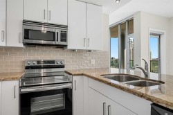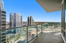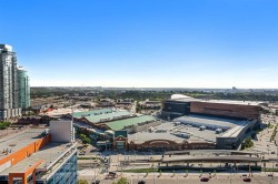 Your Sky-High Retreat in the Heart of Calgary's Entertainment District! Imagine waking up to breathtaking city views from the 21st floor and unwinding as the downtown lights twinkle below. Welcome to SASSO—an exceptional opportunity to experience the vibrant energy of Victoria Park. This concrete building, situated in the heart of the Beltline, is conveniently close to numerous amenities and just a short walk from downtown.This unit features a fantastic floor plan with floor-to-ceiling windows that fill the space with natural light, making it one of the most desirable locations in the building. This stylish two-bedroom condo, located in an 18+ adult complex, offers the ultimate urban lifestyle. Step inside this renovated unit and enjoy the spaciousness created by nine-foot ceilings, luxury vinyl plank flooring throughout, and an open-concept layout.The modern kitchen, equipped with granite countertops and sleek white cabinets, is perfect for preparing dinner before heading out for the night. Enjoy warm evenings on your private covered balcony, complete with a gas BBQ. For cozy nights in, relax on your couch, perfectly positioned to take in the stunning view. The main floor features beautiful new luxury vinyl plank flooring for easy maintenance.The open layout provides ample space for entertaining, with the kitchen boasting granite countertops, stainless steel appliances, an eating bar, a double sink, and plenty of cabinet space. Both bedrooms are spacious and include walkthrough closets and their own full bathrooms, ensuring privacy as they are separated across the condo.World-class amenities await you, including a concierge, fitness center, theater, hot tub, and more. With the city at your doorstep, you are just steps away from the LRT, Stampede Grounds, Sunterra Market, and a variety of dining and shopping options on 17th Avenue. This isn't just a condo; it's your gateway to a sophisticated and convenient urban lifestyle. Be sure to view the full 3D virtual tour!