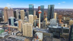Elevate your lifestyle! Live on 22nd floor with breath-taking and timeless scenic views that will inspire and invigorate. This home has lovely natural light from every window in this stunning executive condo located at Keynote One, in the heart of Calgary's (Alberta) Beltline. Perfect for professionals who love being close to work, the new Library, Stampede Park, and the vibrant East Village with its entertainment, restaurants, and amenities. On the main floor of the complex you’ve got Sunterra Market, Starbucks, restaurants, and a craft beer store. This spacious two-bedroom, two-bathroom condo with large balcony (with a stunning view of Calgary), boasts 9-foot interior ceilings and floor-to-ceiling windows showcasing views of the Beltline, mountains, and downtown. The open-concept kitchen features granite countertops, and stainless steel appliances. The master bedroom offers a large walk-in closet, and full en-suite bathroom. You'll also enjoy in-suite laundry, and a titled parking spot with convenient underground parking. The building's amenities top-tier, including a fully equipped gym, and cardio room, an owner’s lounge with a kitchen, a rooftop terrace, and guest suites available for rent. This is the perfect place to call home.