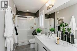 Welcome to this no-condo-fee end-unit 2-storey townhome by Bedrock Homes, located in the vibrant Heartwood community. This home features a double detached garage on a concrete pad and the added privacy of a side entrance. The thoughtfully designed layout offers 3 bedrooms and 2.5 bathrooms, perfect for families or professionals. The spacious primary bedroom includes a large walk-in closet and a private ensuite with dual sinks. Bright, functional living spaces and modern finishes complete the home, with easy access to parks, schools, and everyday amenities. A fantastic opportunity to own a low-maintenance home in a growing neighborhood. Photos are representative. (id:27)