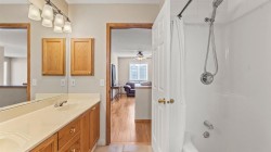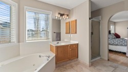 Welcome to this beautifully maintained two-storey home in the highly sought-after community of Rocky Ridge, offering 2,201 sq. ft. of thoughtfully designed living space above grade, plus a fully developed basement. With mountain views, abundant natural light, and an ideal family-friendly layout, this home blends comfort, functionality, and timeless style in one of northwest Calgary’s most desirable neighbourhoods. The main floor impresses with soaring ceilings, expansive windows, and a bright, open layout that feels both spacious and welcoming. A large living room with fireplace provides a cozy setting for everyday living, while the formal dining area is perfectly positioned for hosting family dinners and special occasions. The well-appointed kitchen features ample cabinetry, generous counter space, a central island, and exceptional storage—designed for both practicality and effortless entertaining. A convenient main-floor laundry room, 2-piece powder room, and central air conditioning complete this level, ensuring everyday comfort and ease. Upstairs, a charming loft overlooks the main living area, offering a flexible space ideal for a home office, reading nook, or additional family lounge. The upper level is bathed in natural light and features three generously sized bedrooms and two full bathrooms. The spacious primary retreat is a true highlight, complete with large windows, excellent closet space, and a spa-inspired ensuite featuring a soaker tub, separate shower, and bright double-vanity area—your own private place to unwind. The fully developed basement expands the living space with a fourth bedroom and a 3-piece bathroom, making it perfect for guests, teenagers, or a private home office, along with additional room for recreation or hobbies. Outside, enjoy mountain views and a low-maintenance yard, while the attached garage provides everyday convenience and additional storage. The home’s bright interior, easy-care finishes, excellent storage throughout, and thoughtful layout reflect the owners’ pride of ownership. Located in the vibrant community of Rocky Ridge—close to parks, walking paths, schools, shopping, and transit—this home offers exceptional value, space for the whole family, and a lifestyle you’ll love. Bright. Spacious. Exceptionally functional. This is Rocky Ridge living at its finest.