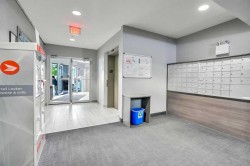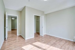 Amazing value for an amazing amount of space in this bright and spacious 2-bedroom plus den, 2 full bathroom corner unit condo! This large corner unit is flooded with natural light and features a larger-than-average wraparound balcony—perfect for relaxing or entertaining. The home is in excellent condition and located in a very clean and well-maintained building. The primary bedroom is generously sized and includes a spotless private ensuite bathroom, while the second bedroom has a convenient cheater door to the second full bath, essentially giving it ensuite access as well. A bonus den area offers the perfect spot for a tucked-away home office. The large kitchen is outfitted with maple cabinets, brand new quartz countertops, and brand new stainless steel appliances including a stove, fridge, and dishwasher. Both bathrooms also feature brand new quartz countertops, and luxury vinyl flooring has been installed throughout the living, dining, and bedroom areas. Additional highlights include in-suite laundry, a separate storage locker on the same floor, and a surface parking stall. Located close to major schools, shopping, Genesis Centre, train station, bus stops, walking trails, parks, and playgrounds—this unit combines space, style, and convenience at an unbeatable price. Don’t miss the photos and 3D tour!