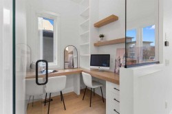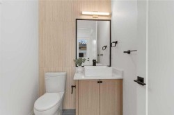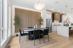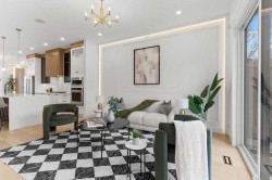 Welcome to this brand new luxury semi-detached home with a 2-bedroom legal suite in the sought-after community of Banff Trail. Perfectly located just steps from the Banff Trail LRT station, this home offers quick and easy access to downtown Calgary, shopping, dining, and recreation. The University of Calgary is only minutes away, making it an excellent choice for families, professionals, students, or investors seeking premium quality and unbeatable convenience.Step inside to discover an elegant main floor featuring 10-foot ceilings and hardwood flooring that extends throughout both the main and upper levels. The open-concept layout is designed for modern living, with a chef-inspired kitchen showcasing a large central island, quartz countertops, ceiling-height cabinetry, and a KitchenAid appliance package. The walk-in pantry with custom MDF shelving provides ample storage, while the spacious dining and living areas create the perfect setting for entertaining. A modern fireplace anchors the living room, and behind it you’ll find a mudroom and a two-piece bathroom for added convenience. A glass-walled office on the main floor offers a stylish and functional workspace for today’s professionals.Upstairs, you’ll find three generous bedrooms, each designed with comfort and style in mind. The primary suite boasts a custom walk-in closet and a luxurious 5-piece ensuite complete with in-floor heating. Attention to detail is evident throughout with 8-foot doors, solid maple handrails, black metal spindles, and custom MDF built-ins in every closet and shelving unit.The fully finished basement offers a separate entrance to a beautifully designed 2-bedroom legal suite, perfect for extended family or as a mortgage helper. This suite features durable LVP flooring, a full kitchen, and in-suite laundry, providing complete independence and functionality for tenants or guests.Outside, the home impresses with black exterior windows, a James Hardie board and brick exterior, and full professional landscaping including fencing, gravel, a tree, grass, and a rear deck with railings—ideal for summer gatherings. The double detached garage with oversized doors provides secure parking and extra storage. Additional upgrades include rough-ins for a security camera system, alarm, and central vacuum, ensuring both convenience and peace of mind.Combining modern architecture, exceptional craftsmanship, and a prime inner-city location, this Banff Trail residence offers the perfect balance of luxury, practicality, and investment potential. Don’t miss your chance to own this stunning property.