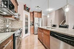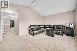 Situated at the quiet end of a well-maintained cul-de-sac, this meticulously upgraded home offers privacy and minimal traffic. The location provides an ideal balance of peaceful residential living with excellent accessibility to major roadways, including quick connections to Stoney Trail and Deerfoot Trail, as well as close proximity to top-rated schools, shopping, and everyday amenities. Inside, the main level is bright and inviting, enhanced by 9-foot knockdown ceilings and premium real hardwood flooring that add warmth and sophistication throughout the space. The kitchen is thoughtfully designed with granite countertops—featured not only in the kitchen but throughout all bathrooms—and is complemented by a newer appliance package including a modern refrigerator, microwave, and oven, making it both functional and stylish. Adjacent to the kitchen, the dining room is generously sized and offers direct access to the patio doors, seamlessly connecting indoor and outdoor living. The open-concept living room flows naturally from the dining and kitchen areas and is anchored by a gas fireplace that serves as a warm focal point, bringing the entire space together and creating an ideal setting for both everyday living and entertaining. The upper level offers a spacious bonus room with vaulted ceilings and expansive windows, creating a light-filled retreat ideal for relaxing or entertaining. The primary bedroom is generously sized and features a walk-in closet and a well-appointed five-piece ensuite complete with a double vanity and quality fixtures. The lower level continues to impress with a rare 9-foot foundation, oversized windows that bring in abundant natural light, and a three-piece bathroom rough-in. This versatile space is perfectly suited for future development, whether as a legal suite (subject to approval), home gym, or media room. Significant investments have been made in the home’s core systems to ensure long-term comfort and value. Recent upgrades include a new roof with Class 4 impact-resistant shingles, added blown in attic insulation, three new high-efficiency windows, and the addition of a powerful central air conditioning system. The summer heat is now something we can look forward to outside but enjoy the cool air on the inside! The outdoor space is equally exceptional. Set on an oversized pie-shaped lot—an increasingly rare offering—this property provides ample room for outdoor enjoyment, entertaining, or family activities. The backyard is anchored by a large deck with an integrated privacy screen, creating a comfortable and intimate outdoor living area. Completing the exterior is a rare extended driveway that accommodates up to four vehicles in addition to the attached double garage, offering outstanding parking and storage options. This is a rare opportunity to own a thoughtfully upgraded, move-in-ready home on a premium lot in a highly desirable location. Book your showing and come on Buy! (id:27)