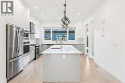 Welcome to refined inner-city living in the heart of Richmond — an ideal opportunity for professionals, growing families, or savvy investors seeking a premium Calgary address. This impeccably crafted semi-detached two-storey home delivers timeless design, modern functionality, and exceptional livability.The open-concept main floor is designed for both everyday ease and elevated entertaining, featuring sun-filled living spaces, elegant finishes, and seamless flow throughout. The chef-inspired kitchen anchors the home, offering a sophisticated setting for hosting, family gatherings, or quiet evenings in. Oversized island, two ovens, ceiling height cabinetry, ample counter space and high-end lighting combined create a great space for all your culinary desires.Upstairs, three spacious bedrooms provide privacy and comfort, perfectly suited for families or work-from-home lifestyles. The primary retreat is a true escape, complete with a spa-inspired ensuite which offers a dual vanity, soaker tub and glass enclosed rain shower. A generous walk-in closet space is ideal for executive living. Additional bedrooms are thoughtfully paired with well-appointed closets and large windows to ensure convenience and comfort for all. An additional 5-piece bathroom and very convenient laundry room wrap up this upper level.The fully developed lower level expands the home’s versatility with a fourth bedroom and full bathroom — perfect for guests, a private office or a home gym. A full wet bar and recreational room offers flexibility for families!Enjoy the rare advantage of a south-facing backyard, offering sun-drenched outdoor space perfect for morning coffee, summer gatherings, or quiet evenings under the sky. Situated in the highly desirable Richmond neighbourhood, this home provides quick access to downtown, major commuter routes, top schools, parks, and some of Calgary’s most sought-after dining and shopping. Whether you’re upgrading your lifestyle or securing a long-term investmen t in a thriving inner-city community, this residence delivers on location, quality, and lasting value.A standout property designed to elevate the way you live. (id:27)