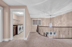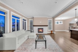 Welcome to this stunning family home in the heart of Mahogany! Beautifully designed and meticulously maintained, this property offers an open-concept main floor with hardwood flooring, a spacious kitchen featuring granite countertops, a large island, pantry, garburator, and stainless-steel appliances including a stove, oven, fridge, dishwasher, and microwave. The main level also includes a dining area, bright living space, 2-piece bath, laundry room, mudroom, and a triple car attached front garage.Upstairs, enjoy a large family room with elegant tray ceilings, three generous bedrooms, a 5-piece main bath, upper laundry, and a luxurious primary suite with a walk-in closet and a spa-inspired 5-piece ensuite complete with heated floors.The fully finished basement provides even more space with a rec room, bedroom, office/library, 4-piece bath, utility room, and walk-in closet.Outside features low-maintenance landscaping with artificial turf and exposed aggregate in both the front and back yards, a 3-car driveway, and electric outlets under the back patio—perfect for outdoor entertaining. Central A/C completes this exceptional home that combines luxury, comfort, and functionality—ready for your family to move in and enjoy!