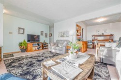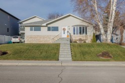 What an exceptional one-of-a-kind property located on a cul-de-sac overlooking a park and enjoying some views of the city. The property includes a fully developed bungalow with numerous renovations, a double detached garage, a separate garden storage area, a carriage house legal suite above the garage with balcony, beautiful landscaping both front and back, and patio areas galore. In 2017, the home was updated with new shingles and eaves troughing, new efficiency furnace, new water tank, new electric panel, new shower in three-piece bathroom, new windows in kitchen, bathroom, and main floor & basement bedrooms. Living and dining room windows have been upgraded as well. The main floor features a traditional L-shaped living/dining area, beautiful bay window with custom blinds, and hardwood under the carpet throughout. The kitchen boasts a new electric range and microwave. The basement is fully developed with a cozy family room complete with an electric fireplace, two bedrooms, bathroom, and a cold room. The double detached garage has in floor heating, a drain and a two-piece bath. The carriage house legal suite also has in floor heating, is fully furnished, including dishes, and patio sets. There is a concrete parking pad for the occupants with access from the back alley. The upgrades included the detached garage, the carriage legal suite with its own street number, the concrete work, the fencing, the landscaping and all the beautiful stonework. A fabulous location enjoying nearby amenities such as community centre, swimming pool, schools, shopping, and convenient transportation. DON'T MISS THIS OPPORTUNITY TO OWN!!! A PLEASURE TO VIEW!!