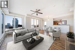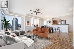 Fall in love with this stunning top-floor corner unit, offering breathtaking city views! This bright, sunny apartment features high ceilings, floor-to-ceiling windows, and a unique design. The open-concept living space is ideal for gatherings with a large kitchen, granite countertops, and a breakfast bar. Enjoy a spacious balcony with a gas outlet for barbecues, and forget gym memberships with a fully equipped on-site gym. All utilities are included with condo fees, plus heated underground parking and 24/7 security. Located in the heart of the Beltline, just steps from 17th Ave shopping, Co-op Grocery Store, Schools, Medical offices, River walk, City parks and the C train ! (id:27)