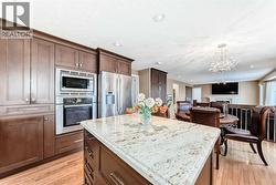 Welcome to this exceptionally well-built, bright, and spacious two-storey family home, perfectly positioned backing onto a park and green space with breathtaking, unobstructed views of the city skyline, stunning mountain scenery, and spectacular sunrises. Enjoy a truly private backyard with panoramic, forever views — a rare and priceless feature.This home features a durable tile roof and reflects quality craftsmanship throughout, offering a functional and versatile layout ideal for large or multi-generational families with a total of 6 bedrooms.The main floor boasts a grand foyer, expansive living and dining areas, a renovated kitchen, a large family room, and a main-floor bedroom/den — perfect for seniors, guests, or home office use.Upstairs, the generous primary suite offers a 4-piece ensuite and walk-in closet, along with two additional well-sized bedrooms.The fully finished walk-out basement includes two more bedrooms, a full bathroom, a recreation room, and a wet bar, making it an excellent option for teenagers, extended family, or a nanny suite.Additional highlights include two separate laundry setups (main floor rough-in plus basement laundry), long-term proud ownership, and an unbeatable location just minutes from Sunterra Market, steps to Sirocco Drive LRT Station, and close to parks, schools, and all essential amenities.A rare opportunity to own a high-quality family home with unmatched views, space, and location — book your private showing today! (id:27)