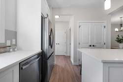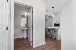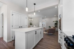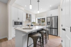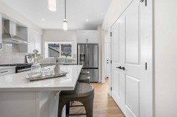** Brand New, Move in Ready Home built by Genesis Homes with a LEGAL 2 Bedroom Basement Suite ** The Amber | Stunning Open Floor Plan | Top of the Line Finishes | Sparkling Kitchen | Quartz Countertops | Stainless Steel Appliances | Kitchen Island | Barstool Seating | Pantry | 50" Electric Fireplace | Wide Plank LVP Flooring | Recessed Lighting | Expansive Living Space | Main Level Flex Room | Upper Level Bonus Room | Upper Level Laundry | Totaling 5 Bedrooms & 3.5 Bathrooms | Legal 2 Bedroom Basement Suite | Separate Entry | Separate Laundry | 9Ft Basement Ceilings | Great Backyard | Double Detached Garage | Alley Access | Steps Away from the Future Park. Welcome to your brand new 2-storey family home boasting 1,610 SqFt throughout the main and upper levels with an additional 747SqFt legal 2 bedroom basement suite. Step inside to a foyer with open to below ceiling and views into the open floor plan main level. This home was designed with style and comfort at the forefront; wide plank LVP flooring, large windows, recessed lighting, high ceilings and more! The front flex room is ready for anyone with a work-from-home lifestyle or can easily be used as a day seating entertainment room. The great room is both spacious and comfortable plus has a stylish flare of a 50" electric fireplace. Next are the kitchen, family and dining rooms. The kitchen is outfitted with a sparkling quartz countertop, stainless steel appliances, ample cabinet space and a centre island with barstool seating. The dedicated dining room is ready for you to enjoy all your family meals. At the rear of the home is a mud room with closet storage and a door to your back yard and rear double detached garage. The main level is complete with a 2pc bath. Upstairs you'll find 3 sizeable bedrooms all with wide plank LVP flooring. The primary bedroom has its very own 3pc ensuite bath and a walk-in closet. Bedrooms 2 & 3 share the 4pc bath with a tub/shower combo. The upper level hall laundry is every home owner's dream as its located steps away from all bedrooms! Downstairs, the LEGAL 2 bedroom basement suite has a separate entry and its own laundry facility making it a completely independent level to this home. This is great as a mortgage helper or for extended family. The basement has 2 sizeable bedrooms, each with great closet space. The open floor plan kitchen and rec room provide flexibility for living and dining. The kitchen is outfitted with quartz countertops, stainless steel appliances and full height cabinets. The 4pc bath on this level has a tub/shower combo and single vanity. Outside is a great backyard and rear double detached garage with alley access. Hurry and book a showing at this gorgeous brand new Genesis home today!