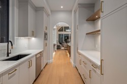 OPEN HOUSE Fri Jan 23, 4-6PM, Sun Jan 25, 12-3PM! Homes on this exclusive ridge rarely come to market, and this breathtaking two-storey estate is a shining example of elevated inner-city living. With 5,545.89 sq.ft. of exquisitely developed space, this 6 bedroom, 5.5 bath residence blends refined craftsmanship with functional luxury; set against a backdrop of sweeping valley and park views. Step inside to soaring ceilings, pristine engineered hardwood floors, and custom archway details that frame each thoughtfully designed space. The heart of the home begins in the sunlit dining area, perfect for hosting epic dinner parties, and highlighted by west-facing triple-glazed LUX windows. The adjacent chef’s kitchen impresses with stainless steel integrated appliances, including a Wolf gas cooktop, double wall ovens, classic white shaker cabinetry, and a hidden butler’s pantry for discreet prep and storage. The expansive great room invites relaxation with vaulted ceilings and a cozy microcement faced gas fireplace, opening directly to a sunny south-facing deck overlooking endless green space. A main floor guest suite (or executive office) with a private ensuite, a designer powder room, and a spacious mudroom with built-ins complete this level. The fully insulated triple car garage is EV-ready and lift-kit friendly, marrying form and function. Upstairs, a serene primary retreat features elegant vaulted ceilings, a custom walk-in closet, and a spa-inspired 5-piece ensuite with a soaker tub, dual vanities, and a glass shower with bench and niche. Three additional bedrooms (one with an ensuite), an upper laundry room with sink and storage, and a charming library nook provide comfort and convenience for the entire family. The fully developed basement is an entertainer’s dream: featuring a large media lounge, games area, wet bar with brick backsplash and undermount lighting, and a high calibre wine room that secretly accesses the highly systemized maintenance room. A versatile home gym, sixth bedroom with walk-in closet, and additional full bathroom on this level ensure guests feel at home. Noteworthy highlights include: Hydronic in-floor heat in the basement; 2 High-Efficiency furnaces & A/C units; built-in speakers throughout; and quartz countertops in all bathrooms. Located minutes from the University of Calgary, Foothills Hospital, and local shops and restaurants, this timeless home sits in a top-tier school catchment and offers quick access to major routes while maintaining a tranquil, park-like setting. A truly unique opportunity to own a well-appointed, move-in ready home in one of the city’s most prestigious enclaves.