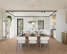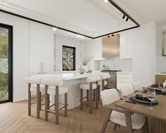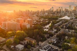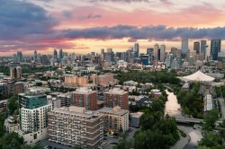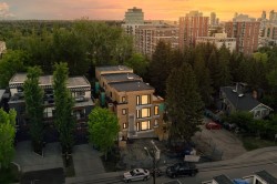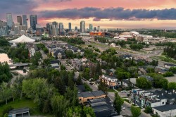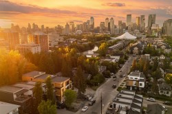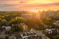 This three storey townhome incorporates modern-traditional interior design elements for a sophisticated and timeless aesthetic. Perched upon a hill in one of Calgary's most iconic river communities overlooking the picturesque skyline, this brand new unit is a culmination of high quality materials, thoughtful finishing selections, and grand inclusions. The attached triple car garage and private elevator are characteristic of the many luxurious additions strategically embedded within this home. The main floor layout includes a chef's kitchen with premium panel-ready appliances, dining room, living area with gas fireplace, powder room, wet bar, built-in desk area, main floor balcony with sweeping city views, and an outdoor BBQ deck at the rear. On the second level there are two bedrooms, each with walk-in closets and 4 piece ensuites, along with laundry and a den. The entire third floor is occupied almost entirely by a spacious primary retreat with another gas fireplace, a walk-in-closet, an attached 6 piece ensuite including a steam shower, bidet and in-floor heating, an additional wet bar, and a third level balcony (designed and loaded for a hot-tub) overlooking the city. This intentional floorplan prioritizes comfort and convenience while maximizing utilization of space. Intricate millwork, ornate wall and ceiling mouldings, curved kitchen island, brush gold accents, 9 foot ceilings, and herringbone hardwood all work together seamlessly to emulate carefully curated beauty. With unrivalled cityscape views, this home is a testament to deluxe inner city living. Notable specifications include: quartz countertops, Spanish porcelain tile, engineered European Oak hardwood, custom designed casing & mouldings, designer light fixtures, LED backlit staircase railings, millwork built-ins, satin brass and matte black hardware, along with rough-ins for speakers, a security system and power blinds.. Situated amongst the natural landscape of the river pathways and surrounded by some of the city's most notable landmarks in the peaceful community of Erlton. Quickly access the shopping and dining opportunities along 4th street, the brand new Convention Centre, Calgary Stampede Grounds, and get to the downtown core in minutes. Expected Completion September 2025. Renderings are for artistic purposes only and to give a sense of space. Actual specifications of completed product may differ. Inquire for a list of customizable and/or upgradable features.