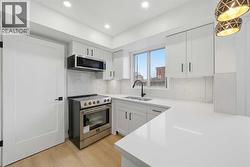 Modern Minimalist Corner Townhouse – Stylish, Simple, and Sustainable Living!Located in a peaceful, well-connected inner city neighborhood, this home offers the perfect balance of urban convenience and tranquil living.Experience the beauty of simplicity in this thoughtfully designed minimalist townhouse, where clean lines and open spaces create a calm, clutter-free atmosphere. This home features an open-concept layout that seamlessly connects the living, dining, and kitchen areas— perfect for those who appreciate functional design and modern aesthetics.The kitchen comes equipped with brand-new stainless steel appliances, sleek cabinetry, and energy-efficient LED fixtures that blend form and function. Upstairs, the spacious master bedroom with double closets, providing ample storage while maintaining the minimalist aesthetic. A private balcony, ideal for morning coffee or evening relaxation. Enjoy the abundant sunlight and a serene retreat from the city’s bustle! A convenient 4 piece bathroom with tasteful designer wall completes this level,Downstairs, a spacious basement living room offers a cozy retreat for relaxing or working— ideal for movie nights or a quiet office or 2nd bedroom. The home includes a newly renovated bathroom with modern fixtures, plus a laundry room with built-in shelving for organized convenience.Throughout the home, high-end luxury vinyl plank flooring adds warmth, durability, and a refined modern touch.Outside, you’ll find a tidy yard and a welcoming front porch.With neutral color tones, high-quality finishes, and low-maintenance materials, this townhouse is ideal for anyone embracing a minimalist lifestyle — less stuff, more space, and a focus on what truly matters.Close to everything, best inner-city living with quick access to downtown, 17th Ave, and the CTrain station. Few minutes away to Shaganappi Point Golf Course, Edworthy Park, schools, playgrounds, shops, restaurants and cafés. (id:27)