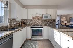 Premium location for this bright, spacious 3rd-floor end unit with no neighbours above! One of the largest units in this well-managed Adult 60+ community, this 2-bedroom, 2-bathroom home offers an excellent open-concept layout with extra South and West facing windows flooding the home with an abundance of natural light. The U-shaped kitchen is generous in size with granite countertops, a large peninsula, white cabinets and pull-outs, and newer stainless-steel appliances. The living and dining areas feature a large open space for added comfort and ambiance, along with electronic blinds and laminate flooring running throughout most of the unit. The primary bedroom includes a private 4-piece ensuite with walk thru closet, while a 3-piece main bath is perfect for guests off the second bedroom. Additional highlights include a large covered balcony, tiled entry, in-suite storage with newer stand-up washer and dryer, jacuzzi tub, towel warmer, quartz bathroom countertops, and a titled heated underground parking stall. Enjoy an exceptionally active and welcoming community or simply relax in the comfort of your own home. Building amenities span multiple floors and include a dining room, Café Bistro, lounge, craft room, exercise room, hair salon, library, guest suite, rooftop, and a carwash. Did I mention a chef Mon-Fri for dinner? Condo fees include heat, water, and electricity. A mandatory $75/month dining fee applies for weekday meals. Public transit is conveniently located , with shopping, restaurants, and health services just steps away. The LRT station is adjacent to the complex, making commuting effortless. This impressive unit truly offers comfort, convenience, and community…a must-see! (id:27)