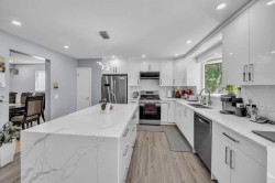 WALK OUT LOT | 6 BEDROOMS | 4 FULL BATHROOMS | 2 BEDROOMS ILLEGAL SUITE | QUIET CUL-DE-SAC | DOUBLE ATTACHED GARAGE | EXTENDED DRIVEWAY | Welcome to this beautiful family home, perfectly tucked away in a quiet cul-de-sac on a spacious northeast-facing, pie-shaped walkout lot in the well-established and highly convenient community of Ranchlands. With over 3,900 sq ft of total living space, this home offers the perfect blend of comfort, functionality and versatility—ideal for growing families or those who love to entertain. Recent upgrades include a new roof (June 2015), a fully renovated kitchen (2022), updated bathrooms (June 2025), and fresh interior paint and pot lights throughout (June 2025). Upon entering, you'll be welcomed by a bright and spacious living room with soaring ceilings that seamlessly flows into a formal dining area. Just beyond is a stylish, modern kitchen, recently updated with sleek cabinetry, a stainless steel appliance package and a massive pantry with built-in shelving for added convenience. The kitchen connects effortlessly to the dining area and opens into a generous family room featuring a cozy gas fireplace—perfect for warming up on cool winter evenings. From here, step through the patio doors onto a large deck, ideal for year-round entertaining while taking in breathtaking views of the mountains and Canada Olympic Park (C.O.P.). Not to be overlooked, the main floor also offers the convenience of a spacious bedroom and a full bathroom, making it perfect for guests, extended family or multi-generational living. The upper floor features a luxurious primary retreat complete with a spacious ensuite bathroom, offering the perfect space to unwind. You’ll also find two additional well-sized bedrooms, a full family bathroom and a bright and expansive loft with a skylight—ideal as a home office, reading nook or play area. The fully finished walkout basement adds exceptional value, featuring two bedrooms, its own kitchen, a comfortable living area, a 4-piece bathroom, a dedicated mudroom, ample storage space, and a separate laundry area—making it ideal for extended family, guests, or potential rental income. Not to be missed, the huge pie-shaped, fully fenced, and treed backyard offers a massive concrete patio—a perfect haven for family gatherings, summer barbecues, and year-round relaxation. To top it all off, a double attached garage with an extended concrete driveway offers ample parking and everyday convenience. This walkout home is your gateway to the ultimate lifestyle, offering a thoughtfully designed layout that fulfills every need and desire. Ideally located in Ranchlands, you'll enjoy close proximity to schools, parks, shopping, transit and more. Don’t miss your chance—schedule a private showing with your favorite realtor today before it's gone!