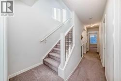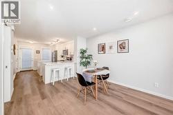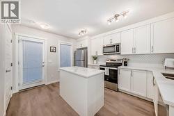 Meet your elevated escape! This like-new, pet-friendly townhome offers chic, low-maintenance living with low condo fees and almost 1400 sq ft of thoughtfully designed space. The home features 2 spacious primary bedrooms, each with its own ensuite, plus a convenient main-floor powder room and a versatile bonus room - perfect for an additional bedroom, home office, kid's play area, etc. The bright, modern interior of this beautiful home showcases white cabinetry and white quartz countertops throughout plus stainless steel appliances, an upgraded kitchen backsplash, and a kitchen island that adds extra storage and workspace. A breakfast bar makes casual meals easy, while a dedicated dining room is perfect for entertaining. Upgraded window coverings and a smart mix of laminate and carpet flooring will make a stylish statement that you can be proud of. The upper-floor laundry adds everyday convenience while central air conditioning keeps things comfortable year-round. Relax and finish the day on your large, private rooftop patio with mountain view - ideal for enjoying summer evenings with family and watching sunsets with that special someone. Immediate possession, Move-in ready, Immaculate condition, located in amenity rich Seton and packed with an array of lifestyle perks, this home truly lives large! (id:27)