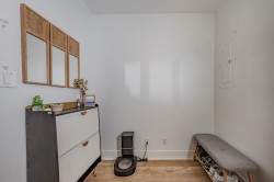 Welcome to the First, a modern condo in the heart of Calgary’s EastVillage. This one-bedroom, one-and-a-half-bath home offers a smartlayout with beautiful finishes and plenty of natural light. Largewindows fill the space with sunshine, and the private balconyoverlooks a quiet courtyard, giving you a peaceful spot to enjoy yourmorning coffee or relax in the evening. The entryway opens into apractical foyer with a half bath for guests and a tucked-away laundryarea. The kitchen stands out with stainless steel appliances, quartzcountertops, a built-in oven, and soft-close cabinets. The island addsextra prep space and makes it easy to entertain or enjoy casual meals.The living area feels bright and open, flowing nicely into thebedroom. Behind a sliding barn door, you will find a large walk-incloset and a stylish ensuite with a glass rainfall shower that feelslike your own private spa. You will also have central airconditioning, a titled underground parking stall, and a large storagelocker for convenience. The building offers great amenities, includinga fitness center, yoga room, party lounge with a kitchen and bar, skyclub with a pool table, business meeting room, and a rooftop patiowith BBQs. Located steps from the Bow River pathways, the SimmonsBuilding, the Central Library, and plenty of shops and restaurants,this is a perfect spot for anyone who wants to enjoy city living withcomfort and style. Whether you are an investor, professional, orstudent, this home offers the ideal mix of convenience, design, andlocation.