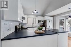 Located on a quiet street in Scenic Acres, this two storey-split home offers over 3,000 square feet of developed living space, a thoughtful layout, and a west-facing backyard that backs directly onto green space. With five bedrooms, three and a half bathrooms, soaring ceilings, and a double attached garage, the home balances scale with everyday functionality. Its position just steps from schools, parks, and pathways adds to the appeal for families. The main floor is defined by a dramatic vaulted ceiling and expansive windows that flood the living and dining areas with natural light. The kitchen is equipped with stainless steel appliances and includes an eating nook overlooking the backyard. Open to the family room, the layout creates a comfortable flow for everyday living, with a cozy gas fireplace and sliding doors that lead directly to the back deck. A main floor bedroom offers flexibility as a guest room or home office, complemented by a convenient two-piece powder room and a dedicated laundry area. Upstairs, the primary retreat features a bay window overlooking the backyard and green space, along with a walk-in closet and four-piece ensuite. Two additional bedrooms and a four-piece bathroom complete the upper level, offering privacy from the main floor while keeping family areas comfortably connected. The fully developed basement expands the home’s versatility with a large recreation room designed for relaxing or entertaining. A wet bar, gas fireplace with built-in cabinetry, and a projector with screen create a comfortable media and gathering space. An additional bedroom and four-piece bathroom provide flexibility for guests or older children, while ample storage keeps the space practical and organized. The west-facing backyard is a standout feature, with a massive deck that runs the full length of the home, ideal for afternoon sun and evening gatherings. Beyond the deck, a large grassy area and established garden beds lead directly to the green space behind, o ffering both privacy and open views. Scenic Acres is a well-established northwest community known for its access to schools, outdoor amenities, and commuter routes. Scenic Acres School and Monsignor E.L. Doyle School are just steps away, while Crowfoot LRT and the Crowfoot Park and Ride provide convenient transit options. Shopping, dining, and services at Crowfoot Crossing, including the YMCA, are minutes away. The area is surrounded by parks, walking and biking pathways, an off-leash area, and quick access to Baker Park and the Bow River. Major routes such as Stoney Trail and Crowchild Trail make commuting across the city or heading west to the mountains straightforward. Take advantage of your opportunity to see this incredible property in person—book your showing today! Be sure to check out the floor plans and 3D tour for a closer look before your visit. (id:27)