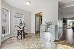 Welcome to this beautifully finished 2-storey home in the highly sought-after, mature community of Millrise! With over 2,300 sq. ft. of developed living space, including four bedrooms and 2.5 baths, this home offers so much more than meets the eye. From the curb, it feels cozy and quaint, but step inside and you’ll be greeted by a dramatic open-to-above foyer with nearly 17-foot ceilings and a 12-foot vaulted living room that immediately sets the tone. The front living room is bathed in natural light through its oversized window and flows seamlessly into the spacious formal dining area – perfect for hosting holiday dinners or family celebrations. The heart of the home is the upgraded kitchen, featuring granite countertops, a stylish glass tile backsplash, abundant cabinetry, and sleek stainless steel/black appliances. A bright breakfast nook overlooks the large backyard and flows into the sunken family room, where a timeless wood-burning fireplace with tile surround and wooden mantle creates the perfect gathering place for cozy evenings. A convenient main floor laundry room with side entry and a well-placed half bath complete this level. Upstairs, you’ll find three generously sized bedrooms, including a large primary suite with walk-in closet and pocket door access to the full four-piece bath with jetted soaker tub, full tile surround, and separate shower. The fully finished basement offers a private retreat for teens or guests with a fourth bedroom featuring a huge walk-in closet and its own full bathroom. There’s also plenty of open space for a media area, home gym, or games room – you decide! Step outside and enjoy the expansive backyard with huge deck, fire pit, and room to build your dream garage. The stucco exterior adds to the home’s charm while keeping maintenance low. Located on a quiet street in a mature neighborhood, you’ll love being just minutes away from Fish Creek Park, multiple schools, parks, Shawnessy shopping, restaurants, YMCA, and quick access to Stoney Trail and Macleod Trail. This is affordable homeownership in one of Calgary’s most family-friendly communities – offering space, function, and style all in one package.