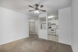 Welcome to this charming second floor condo featuring 2 bedrooms and 2 bathrooms, with over 900 square feet of thoughtfully designed living space in a 55+ adult community. The open-concept layout seamlessly connects the kitchen, dining, and living areas, ideal for both relaxation and entertaining.The abundance of natural light throughout creates a warm and welcoming atmosphere. The spacious kitchen features ample cupboard space, complemented by white cabinets and matching white appliances. Durable laminate countertops provide both functionality. A covered balcony expands your living space outdoors, offering a peaceful setting for morning coffee or evening relaxation. It also features a convenient BBQ gas line, perfect for outdoor grilling. The primary bedroom is generously sized, featuring dual closets and a three-piece ensuite bathroom for added convenience. The secondary bedroom can easily serve as an office. Additional amenities include in-suite laundry and an assigned storage space, enhancing the practicality of this home. This condo also includes an underground assigned parking stall, ensuring convenience year-round. Residents have access to a range of building amenities, including a clubhouse designed exclusively for community members. The clubhouse features a recreation room, a cozy seating area with a library and fireplace, a gym for workouts, billiards, shuffleboard and a party room equipped with a large kitchen for social gatherings. Situated in the desirable community of Signal Hill, this property is just steps away from bus stops, making public transportation easily accessible. For shopping and recreation, Signal Hill Center and Westhills Towne Center are less than ten minutes away, along with the Westside Recreation Centre, which offers a variety of fitness options. Nature enthusiasts will appreciate the proximity to nearby parks, including Battalion Park, Signal Hill Park, and Griffith Woods Park. These green spaces provide ample opportunities for outdoor activities and leisurely strolls. Convenient access to Sarcee Trail and Stoney Trail further enhances the location, allowing for effortless travel throughout the city and beyond. This property combines modern living with a welcoming community atmosphere, making it an excellent choice for those seeking comfort and convenience. Sorry, no pets allowed. Take advantage of your opportunity to see this incredible property in person—book your showing today! Be sure to check out the floor plans and 3D tour for a closer look before your visit.