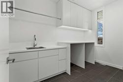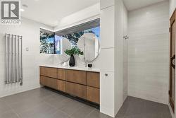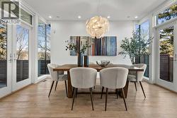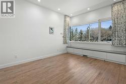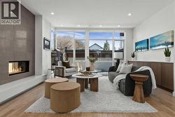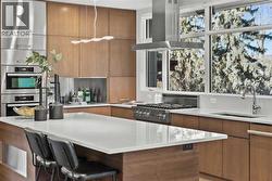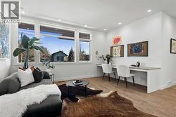 This custom Alloy architectural masterpiece offers over 4,500 sqft of thoughtfully designed living space on a prime 50’ x 120’ inner-city lot in the highly desirable community of Mount Pleasant. The home is ideally positioned at the end of a quiet street with west-facing views overlooking Confederation Park. Designed for both everyday living and elevated entertaining, the home blends exceptional architecture, premium construction, and seamless indoor–outdoor flow. The main level features an open-concept layout with 9’ ceilings, floor-to-ceiling windows, and expansive glazing that floods the living, dining, and kitchen spaces with natural light. A spectacular chef’s kitchen anchors the home, showcasing custom solid wood quarter-sawn cabinetry to the ceiling, Caesarstone backsplash and countertops, a large central island with seating for four, Viking 6-burner gas range, and Miele built-in appliances, complemented by a dedicated coffee station with filtered water hookup. The formal dining area opens to outdoor living spaces through two sets of French doors, while the great room is highlighted by custom built-ins and a double-sided gas fireplace with floating hearth and tile feature wall. A private home office or library overlooks Confederation Park and includes extensive built-ins and lockable file cabinetry. The main level is completed by a thoughtfully insulated powder room, generous storage, a functional mudroom with lockers and exterior-vented closet, and an oversized walk-in pantry with stand-up freezer and wine fridge provision. Upstairs, the primary retreat offers stunning park views, his-and-hers walk-in closets, and a spa-inspired ensuite fully tiled throughout, featuring heated floors, a glass-enclosed walk-in shower, double vanity, heated towel rack, and a four-person cedar sauna. Two additional bedrooms include window seats with storage and custom closets, while a large bonus room with built-in desk offers flexibility as a media space, homework hub, or futu re bedroom. Upper-level laundry, heated bathroom floors, and rockwool sound insulation enhance comfort and privacy. The lower level is equally impressive, with a large media room with surround sound, dedicated fitness room, large flex space, stand-alone gas fireplace, cork flooring with in-floor hydronic heating, oversized fourth bedroom, full bath, and a generous mechanical/storage room with integrated A/V tower. Outdoor living is exceptional with nearly 700 sqft of poured concrete patio space on piles, 2 natural gas hook-ups, outdoor speakers, mature trees, professional landscaping, a multi-zone irrigation system, and a children’s play structure (convertible to additional parking). Completing the property is a detached heated triple garage, built-in storage, workbench, EV-ready electrical panel, A/V connectivity, underground conduit, and a paved back lane. A rare offering combining architectural integrity, park-side living, and enduring quality. (id:27)