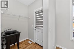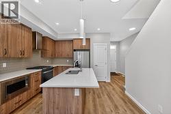 A beautifully maintained 2024-built detached home offering 3 bedrooms, 2.5 bathrooms, and a smart layout designed for modern living. The bright main floor features a versatile flex room, ideal for a home office, playroom, or sitting area, along with a convenient utility sink that adds everyday practicality and can easily be converted into a dog wash. The kitchen is both functional and flexible, featuring a gas stove with the option to convert to electric, while central air conditioning ensures year-round comfort. Upstairs, you will find 3 well-sized bedrooms, including a comfortable primary retreat. The basement is ready for future development, with rough-ins already in place, offering excellent long-term potential.Step outside to a low-maintenance backyard designed for easy living, complete with a gas BBQ hookup and a firepit area perfect for entertaining. The rear parking pad includes an upgraded electrical outlet, ready for future garage development or vehicle plug-in. An added awning over the front entrance enhances curb appeal and functionality. Located in the growing community of Hotchkiss, this move-in-ready home blends the benefits of newer construction with thoughtful upgrades already completed. Simply move in and enjoy. (id:27)