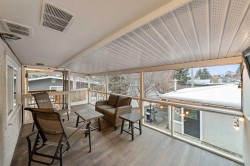 This beautifully renovated Brentwood home offers over 2,000 sq. ft. of thoughtfully refreshed living space on a quiet, private lot designed for easy, low-maintenance living. The charming, no-mow front yard sets a warm first impression, reflecting a home that blends comfort, style, and convenience. Inside, the main floor has been freshly repainted and features newly refreshed hardwood floors and a knockdown ceiling, giving the space a bright, modern feel. The airy, open-concept layout is centred around a welcoming living room with a wood-burning fireplace—one of two in the home ( a rare find!) , creating the perfect setting for cozy evenings. The updated kitchen combines functionality and contemporary design with sleek cabinetry, granite countertops, a generous breakfast bar, stainless steel appliances, and excellent storage, all flowing seamlessly into the adjoining dining area. From here, step out to the screened-in deck—an inviting all-season retreat ideal for morning coffee, quiet evenings, or entertaining around a fire table with a wall-mounted TV. Two well-sized bedrooms are located on the main level, offering flexibility for a serene primary suite, guest room, office, or creative space, along with a stylishly renovated 4-piece bathroom featuring floor to ceiling tile throughout. The fully developed lower level extends the living space with a large, relaxed family room featuring the second wood-burning fireplace, two additional bedrooms that can easily function as hobby rooms, a home gym, or guest accommodations, a renovated spa-inspired 3-piece bathroom, and a spacious laundry area. A separate rear entrance adds privacy for visitors and opens the door to future rental potential (subject to municipal approval). Outdoor living is just as enjoyable, with a covered patio, a private south-facing yard with fire pit, room for container gardening, -perfect for year-round enjoyment. Parking is generous with a double detached garage plus front driveway space for three or more additional vehicles. Triple-pane windows provide enhanced comfort, efficiency, and a peaceful indoor environment. Located in the heart of Brentwood, you’re just minutes from parks, schools, recreation facilities, cafés, shopping, transit, and the University of Calgary. With modern upgrades, refreshed finishes, and adaptable living spaces, this home delivers a comfortable, convenient, and elevated everyday lifestyle.