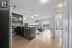 Welcome to SkyWest, a quality-built Truman Homes development. This affordable and functional 1-bedroom condo is ideally located on the 3rd floor and includes 1 titled parking stall.Step inside to a bright, modern open-concept layout designed for everyday living. The kitchen is both stylish and practical, featuring black granite countertops, stainless steel appliances, and a convenient eating bar that flows seamlessly into the spacious living and dining area. From here, enjoy a sunny south-facing exposure and step out onto your large covered balcony overlooking the quiet, courtyard-facing view—perfect for morning coffee or winding down after work.The bedroom is generously sized and complete with a walk-in closet, while the 4-piece bathroom and stacked front-load laundry (tucked neatly behind closet doors) round out the space with smart functionality.Located with quick access to Stoney Trail and Deerfoot Trail, you’re minutes from CrossIron Mills, and just a short walk to nearby shopping, green spaces, and playgrounds. Whether you’re a first-time buyer, downsizer, or investor, this is an excellent opportunity in a well-managed, well-located building. (id:27)