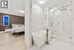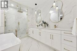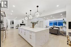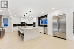This Modern Art Piece, an exceptional custom-built luxury home located in the heart of Brentwood. Meticulously constructed by the builder as a Modern Master Piece, this home reflects uncompromising craftsmanship, premium materials, and thoughtful design throughout. Offering 7 bedrooms, 5.5 bathrooms, and over 3,600 sq. ft. of well designed living space, plus a fully developed legal basement suite with a private, separate walk-up entrance, This property delivers outstanding versatility and value. The striking contemporary exterior, showcases contemporary brick and Hardie Board finishes, enhanced by professional landscaping and elegant exterior accent lighting. Step inside to be greeted by a dramatic 19-foot ceiling in the main living room with an open-to-below second-storey design, creating a bright and expansive atmosphere. The grand living space is anchored by a custom gas fireplace with stone façade, seamlessly flowing into the gourmet kitchen, with an expensive 10-foot quartz waterfall island which serves as the centre piece perfect for entertaining, complemented by top-of-the-line Jen Air appliances and refined finishes. Adjacent to the kitchen is a stylish dining nook with custom wall paneling, while a thoughtfully designed bar offers an ideal space for evening hangouts or serving guests. A private back entry leads to a functional mudroom. The main floor also features a bedroom with its own 3-piece ensuite, ideal to entertain guests, or for extended family needs, along with another 2-piece designer powder room. Upstairs, enjoy an open bonus room overlooking the living area, framed with modern glass railings, The upper level boasts two luxurious primary bedrooms, each with spa-inspired en-suites featuring floor-to-ceiling ceramic tile, in-floor heating, and premium lavatories throughout. one with steam shower, and a free standing soaker tub, The fully developed basement with 9ft ceiling, includes a legal suite with two bedrooms, a full bathroom, a kitc hen with shaker-style cabinetry, complete appliance package, and its own full-sized washer and dryer, The other portion of the basement offers roughed-in plumbing, ready for Customization to suit your lifestyle needs. The home is equipped with three separate furnaces, providing efficient climate control for each level. The backyard features two single-car garages, along with a finished lawn to complete the outdoor space.The location is truly unbeatable—just steps from Brentwood LRT Station, Brentwood Village, Northland Mall, and K–12 schools. The University of Calgary is only minutes away, and quick access to Crowchild Trail ensures effortless commuting while remaining tucked away ,completely peaceful and quite, An outstanding property with exceptional build quality, modern luxury, and an unbeatable lifestyle in one of Calgary’s most sought-after communities. (id:27)