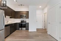 Stylish, well laid out TOP FLOOR 2 bedroom, 2 bathroom condo. Located in popular Sage Hill in the well maintained "Mark 101" by Shane Home, walking distance to shopping and amenities! Features include 9 foot ceilings, Luxury Vinyl Plank flooring and quartz counter tops throughout , vinyl windows with sleek blinds, and in-suite laundry. As you enter the unit, you will find a 4 piece bathroom, and the laundry closet. The modern Kitchen has a functional and warm feel, with dark brown laminate finished cabinets, quartz countertops, modern white subway tile backsplash and stainless steel appliances. Opening on to the kitchen is the family room with a large, bright, sunny window and a patio door leading to your private covered balcony, with gas line roughed in. The primary bedroom has an en-suite bathroom and double closets. The second bedroom is across the family room from the primary allowing for maximum privacy. This unit also includes 1 titled underground parking stall, a storage locker, and there is secure bike storage available in the parkade. Condo fees are affordable and include heat/water/sewer. Located just steps away from public transit, shopping, restaurants, and many other amenities, this is a GREAT place to live OR a wonderful investment property. (id:27)