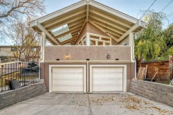 Facing a serene park in historical Scarboro—one of Calgary’s most coveted inner-city enclaves—this exquisite 5-bedroom red-brick residence offers 4,289 sq ft refined living space (Main Floor alone boasts about 1700 sq ft. expansive living place with 3 fireplaces. And 4 bedrooms on upper level with a layout enjoyable for a growing family. ) and a blend of heritage charm and modern craftsmanship. From 2000 to 2022, about $800,000 had been invested in fundamentally transforming the home with modern builds: new three-level 1,700 sq ft addition including the new custom kitchen and family room; updated bathrooms, oversized under-drive, attached double garage, in-floor heating, heated driveway, electrical and mechanical updates, new patio, new windows, new flooring, vacuflo system and more.The iconic red-brick façade and front manicured garden exude timeless heritage charm.The architectural, gourmet Farmhouse Kitchen, designed and built by industry leader Downsview Kitchens, wrapped in three walls of windows with vaulted ceilings and exposed beams, a showpiece kitchen brings exceptional natural light and “the outdoors cooking in.”; Sculptural oversized island with curved granite counters and 2 kitchen sinks; Sub-Zero 48” refrigerator, Gaggenau and Thermador appliances; Italian ceramic tile floors with in-floor heating; Adjacent family room with fireplace; Outdoor kitchen and skylit patio overlooking the gardens; Formal dining room with garden views and custom cabinetry, and built-in Sub-Zero wine/beverage fridge and Miele coffee station nearby; Spacious living room with wood-burning fireplace; Office/den with wood-panelled walls, shelving, and wood-burning fireplace. Upper Level: Four bedrooms, sunroom, and two large bathrooms with completely new renovation; Primary Suite: Extra-large bedroom with sitting area; Spa-inspired ensuite; Custom floor-to-ceiling dressing cabinets and extra walk-in closet; Juliet Balcony; Downtown skyline views! Bedroom 2: Built-in sink/vanity and walk-in closet; Bedroom 3: New custom wardrobe and storage; Bedroom 4: with adjacent south-facing sunroom/yoga room overlooking the park. Lower Level: Exceptional recreation and guest space; Expansive rec/living room with wet bar; Dedicated fitness area; 5th bedroom; Full bathroom; Large laundry area with cast-iron double sink and laundry chute. Heating & Mechanical: Main steam boiler system (2017) with radiant heat; plus 2 additional boiler/furnace systems. Oversized attached double garage with workshop space and heated driveway. Front driveway provides easy access. Unmatched Location with a Park-like Setting - Steps to Downtown and Close to Top-Ranking Schools! A home where timeless character blends seamlessly with modern comfort. Become part of the cherished Scarboro community!