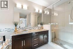 The home you’ve been waiting for in the community everyone wants to be in. Welcome to Aspenshire Estates, where this rare 4-bedrooms-up home is perfectly positioned on a sun-soaked, south-backing lot in one of Calgary’s most desirable westside communities. Walking distance to top-tier schools, Aspen Landing, dining, shopping, and everyday amenities, this is truly a home designed for modern family living. From the moment you enter, you’ll appreciate the thoughtful upgrades and timeless details, including rounded corners throughout, an open-riser staircase, custom built-ins, 9-foot basement ceilings, large basement windows, and an oversized garage. The kitchen is the heart of the home, showcasing stunning full-height white cabinetry, a large pantry, a beautiful central island, and seamless flow into the open-concept dining and living areas, anchored by a striking focal fireplace. A remodeled main-floor office with custom built-in desk space for three makes working or studying from home effortless, while a practical mudroom with added lockers keeps everything organized. The open-riser staircase leads to the upper level, where you’ll find three charming secondary bedrooms, a spacious bonus room with added, wall-anchored cabinetry, and a true primary retreat complete with a walk-in closet and a luxurious five-piece ensuite. The fully developed basement offers incredible versatility with a large 5th bedroom featuring a generous closet, a full bathroom, and a spacious open recreation area. Highlights include a built-in feature wall for TV and entertainment, a custom gym setup with 8mm rubber flooring, custom mirror, and anchored cedar wall beams, plus added wood shelving in the mechanical room for storage. Tucked under the stairs is a dream playhouse—a favorite for kids. Step outside to what may be every child’s dream backyard. A massive 38’ x 20’ poured concrete sport court seamlessly connects to existing stamped concrete and features customized lines for basketball and pickleball. Artificial turf has been added behind the court for low-maintenance play space. The backyard is further enhanced by a custom covered entertainment area, professionally constructed by Suncoast Enclosures using aluminum (anti-rust) framing and specialized panels. This space includes a built-in feature wall ready for a mounted TV with concealed power and a retractable shade for the south-facing exposure. Additional highlights include Gemstone exterior lighting on both levels of the front elevation, a fully finished garage with paint, shelving, sport lockers, and durable wall-panel storage systems (all included), central air conditioning, newer dishwasher, microwave, and hot water tank, and additional lockers added to the mudroom. This is truly where you want to raise your family—surrounded by some of the city’s top schools, close to Westside Recreation Centre, with easy access to Stoney Trail and only 20 minutes to downtown. A rare opportunity to own a thoughtfully upgraded family home. (id:27)