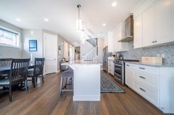 Welcome to this beautifully designed home located in the heart of Glenbrook, one of Calgary’s most charming and established communities. This modern home offers a perfect blend of functionality, comfort, and style ideal for families, professionals, or anyone looking to enjoy a vibrant neighborhood close to parks, schools, and amenities. As you step inside, you're greeted by a welcoming entrance and spacious front closet. Just off the foyer, a bright front room overlooks a lovely tree-lined street, the perfect spot for a home office, reading room, or creative space. The heart of the home features a sun drenched open concept kitchen, dining, and living area. With large windows letting in natural light, this space is perfect for entertaining or relaxing with family. The kitchen offers plenty of cabinetry and prep space, making it a dream for any home chef. Upstairs, you’ll find a thoughtfully laid out upper level that includes a generous laundry room, two well-sized bedrooms, and a stunning primary retreat. The primary suite features dual closets and a luxurious 5-piece ensuite, complete with double vanities, soaker tub, and a separate glass shower. The fully developed basement offers even more living space with a guest bedroom, full bathroom, and a large recreation area, ideal for movie nights, a home gym, or kids’ play space. The basement is roughed in for a wet bar. Step outside to enjoy sun all day long in the backyard, the space features a cozy sitting area and low-maintenance turf grass, great for hosting BBQs. Additional highlights include central air conditioning, tankless water heater, front irrigation system and a large double garage to accommodate two vehicles and all your outdoor gear. From sunrise in the east facing yard to cozy evenings in the living room, every inch of this Glenbrook home is designed to make daily life feel just a little more exceptional.